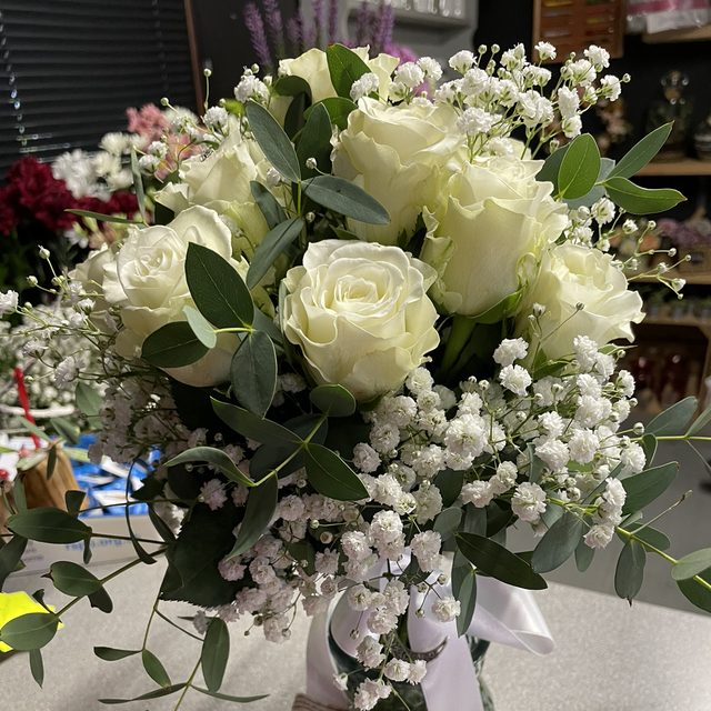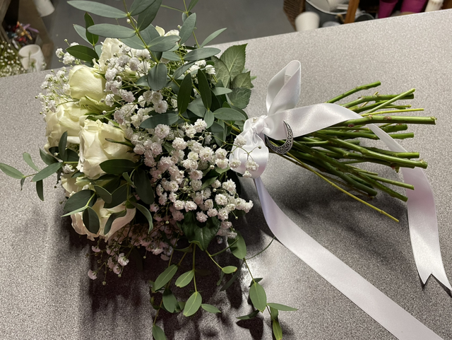 Rose and gyp brides fresh flower bouquet. Colours and flowers can be ordered Ask when ordering as price may vary. Will need at least a month notice for order to be complete and ready on the date needed.
