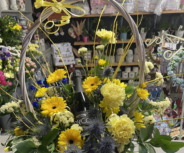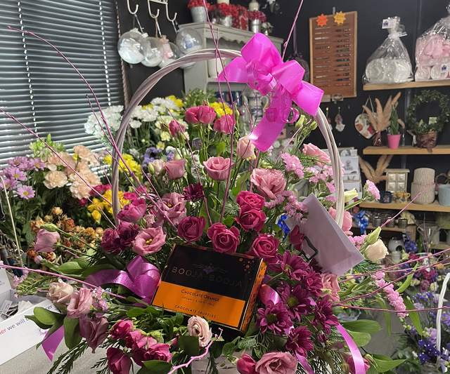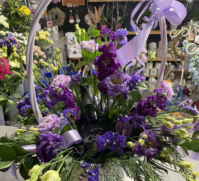 Fresh flower baskets any colour or mixed colours with the added extra of a box of chocolates or a small bottle of Prosecco, please choose when ordering and allow five days for the order to be completed. Collection or local delivery can be arranged