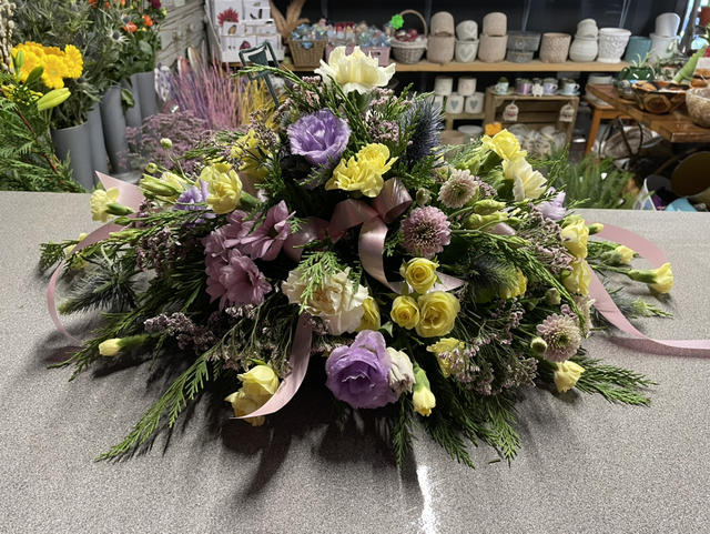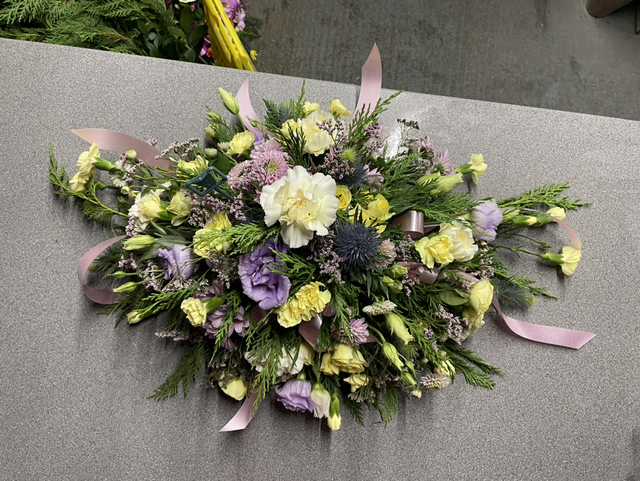 Funeral oasis tribute. Can be ordered in colours of choice and will need a week to complete the order