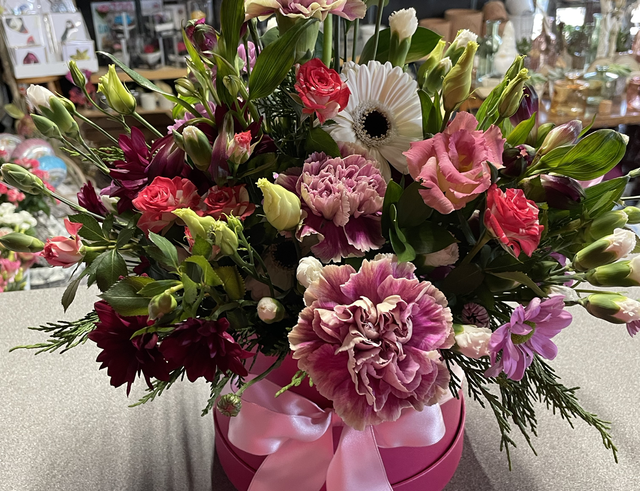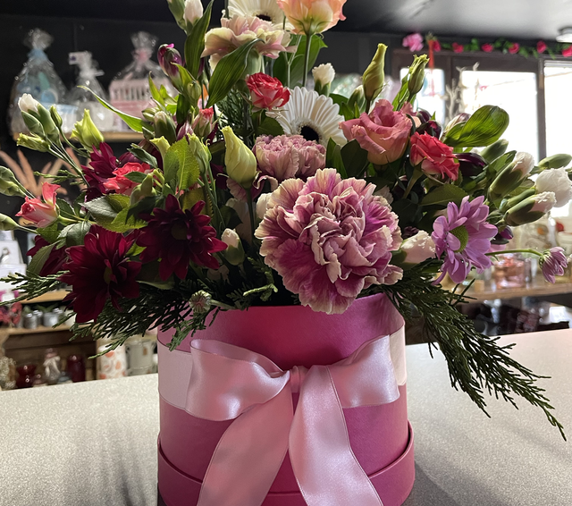 Hat box fresh flower arrangement