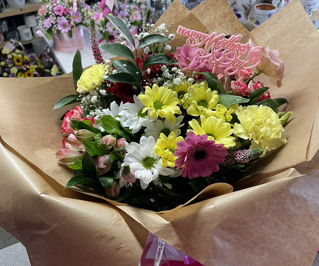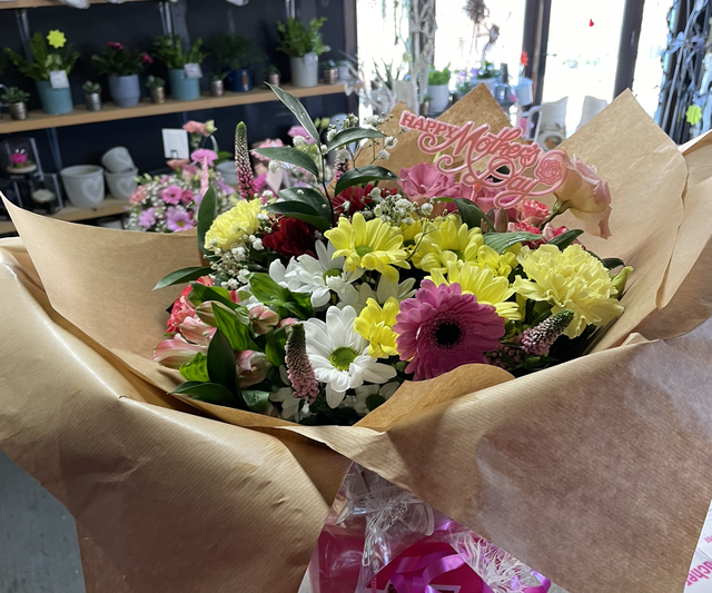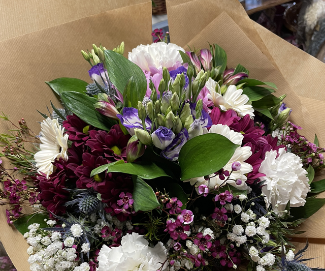 Mixed fresh flower aqua pack hand tied bouquet. This can be any colour or just flowers and colours available at time of ordering. Will need two days to complete the order This can be delivered for a small fee and within 7 miles of nr12 8QU