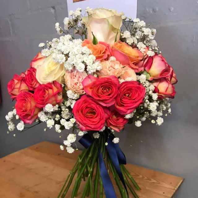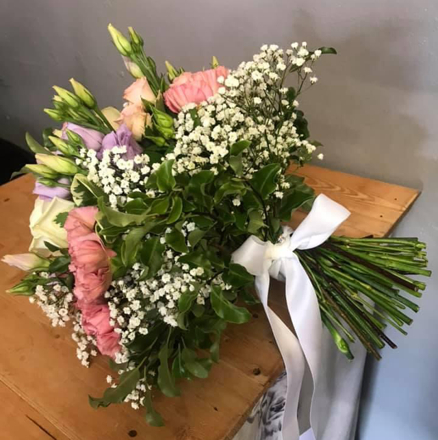 Wedding brides hand tied bouquet can be ordered in colour or choice as flowers. Price will vary to flowers used so ask for more details. Wedding flowers need no less than three months notice of booking flowers