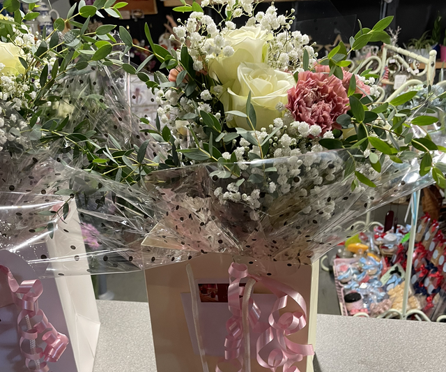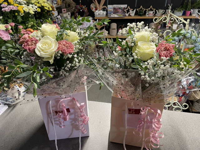 Rose and carnation aqua pack. This can be made in different colours and needs one week for the order to be completed. This can be made for collection or for local delivery