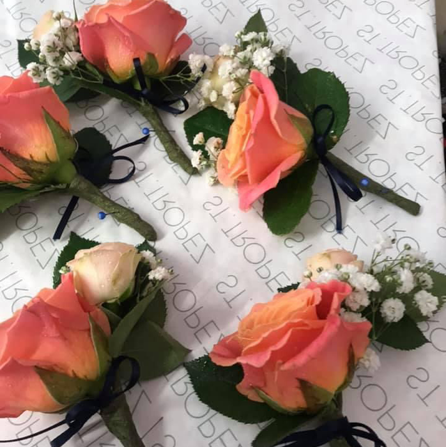 Rose buttonholes made to order. Can be ordered in your colour choice. Wedding flowers need to be ordered no less than three months before the special day.